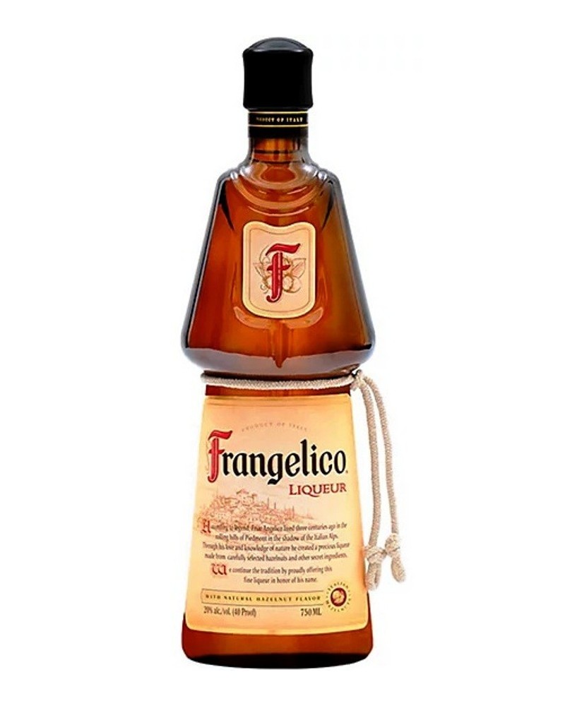 Frangelico Liqueur 40 Proof. Italy- A hazelnut and herb flavored liqueur. Nuts are crumbled up and combined with cocoa, vanilla berries, and other natural flavors, and then left to soak in the base spirit. After the spirit has absorbed the flavor of the ingredients, the liqueur is filtered, sweetened, and bottled.