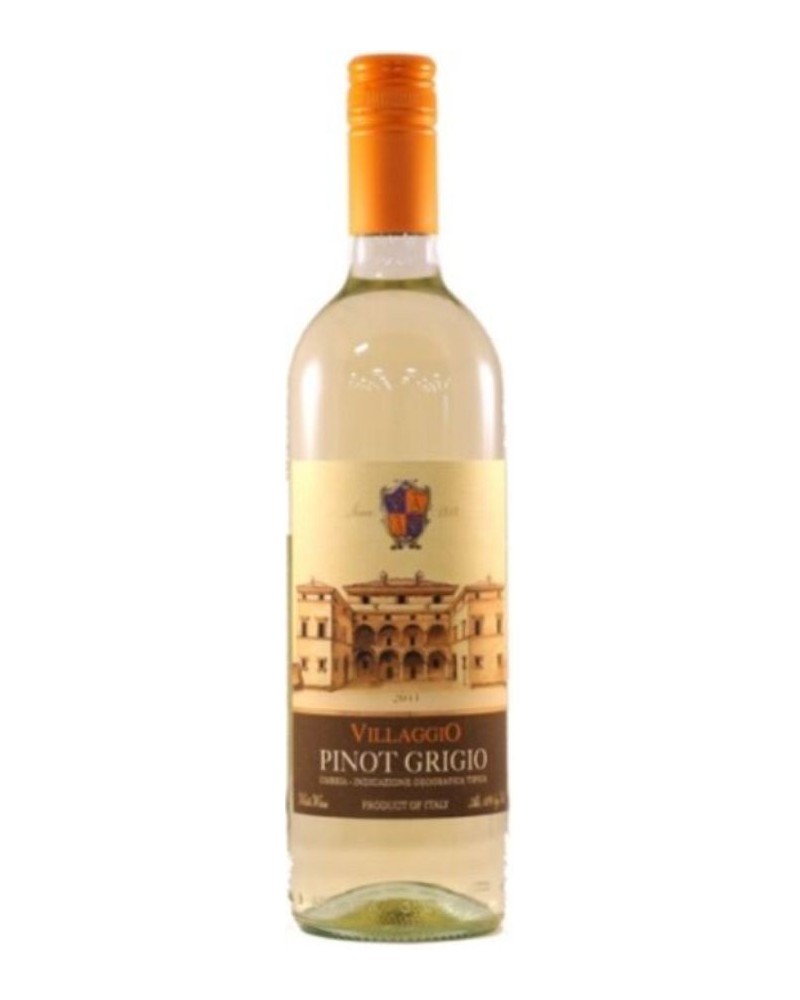 Villaggio Sicilia Pinot Grigio. Brilliant yellow in color. Intense on the nose, with a perfect integration of fruity and flowery aromas of ripe peach, apple and broom.